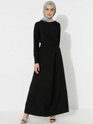 BÜRÜN Siyah Düğme Detaylı Elbise
