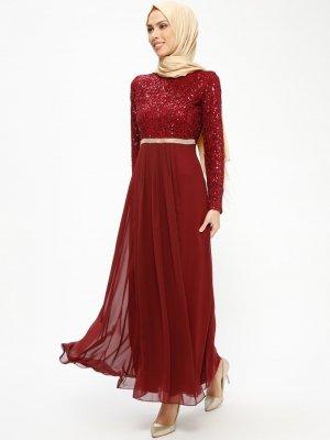 MEKSİLA Bordo Payetli Abiye Elbise