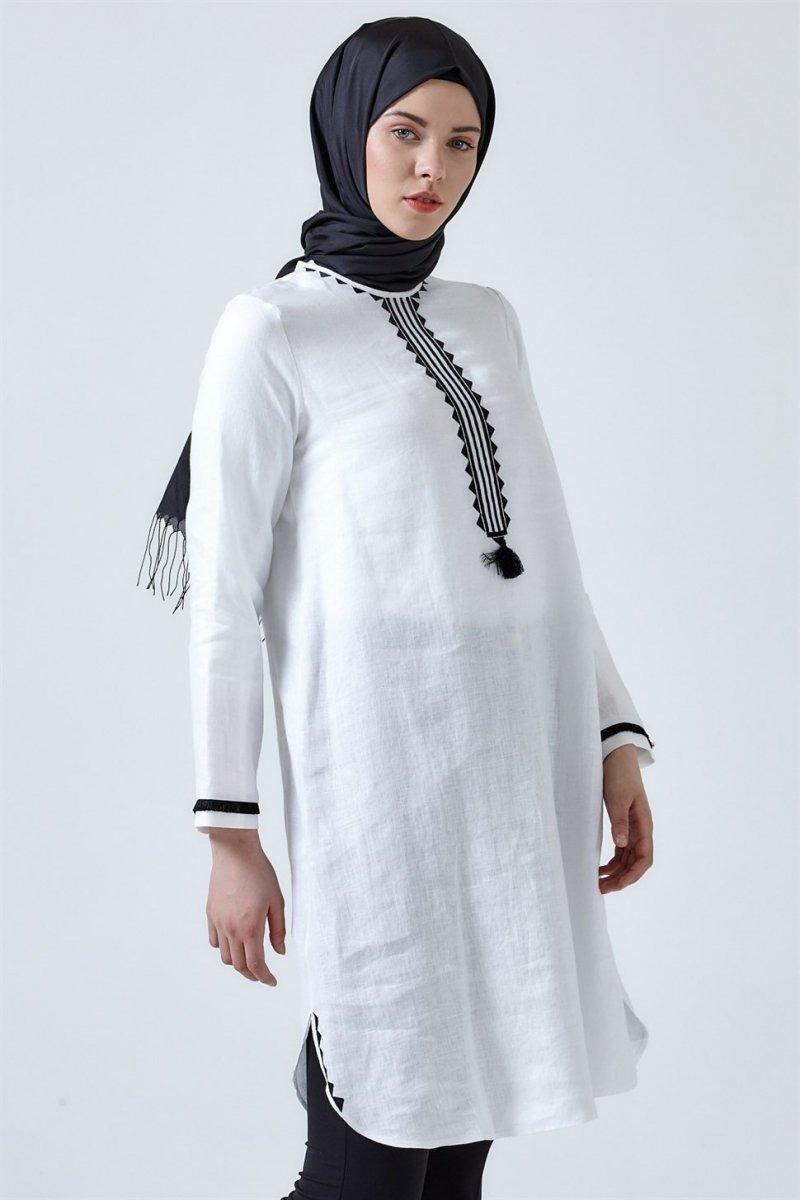 Armine Beyaz Nakış Detaylı Tunik