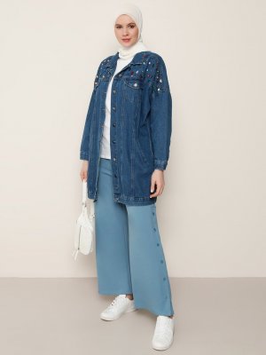 Alia Buz mavi Yanları Çıtıtlı Pantolon
