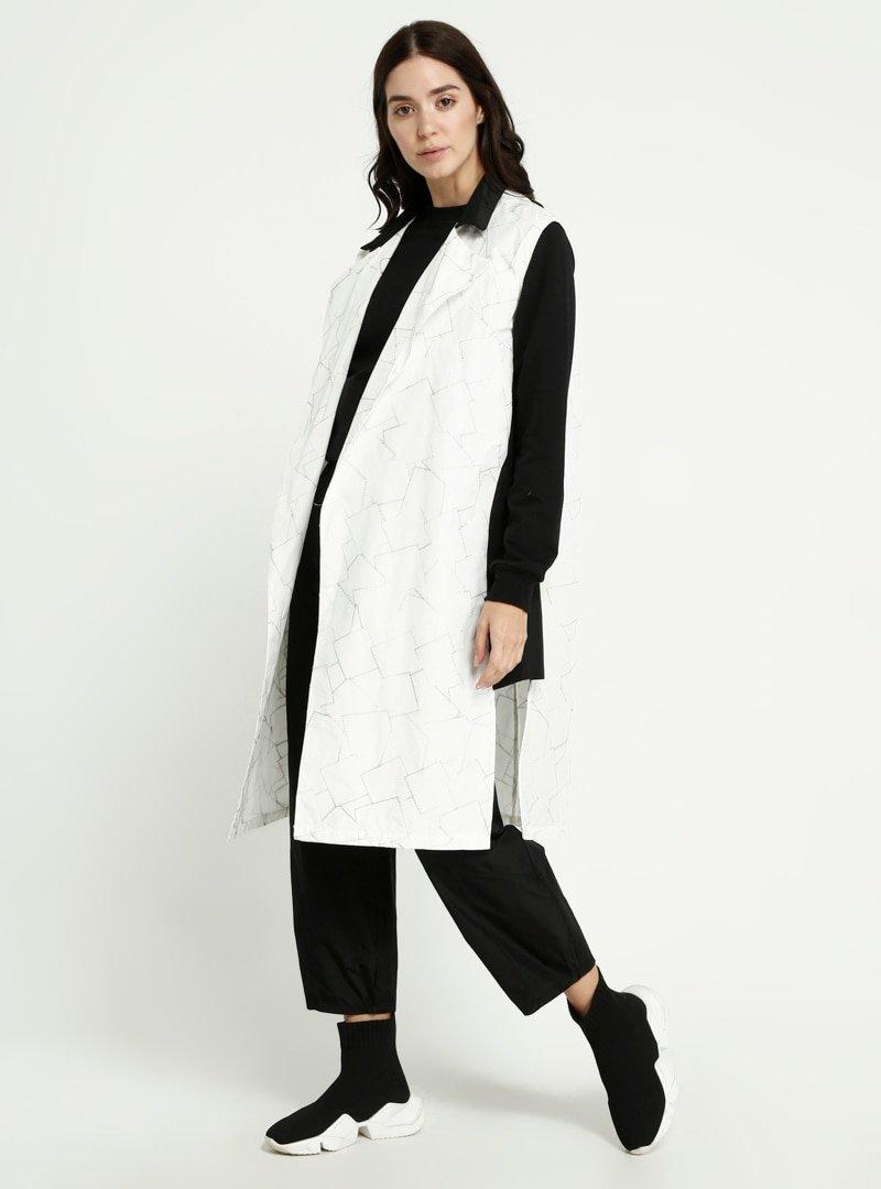 BEYAZ DESIGN Siyah Beyaz Desenli Yelek