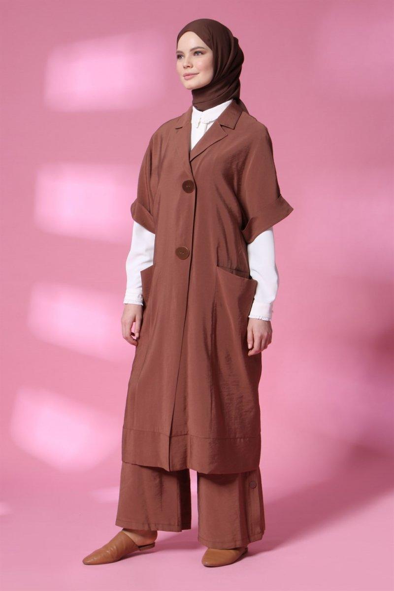 Armine Düğmeli Yelek Kahverengi