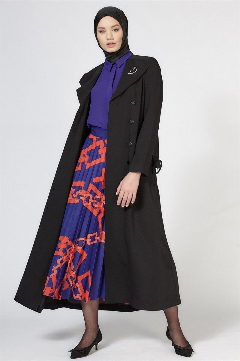 Armine Siyah Broş Detaylı Pardesü