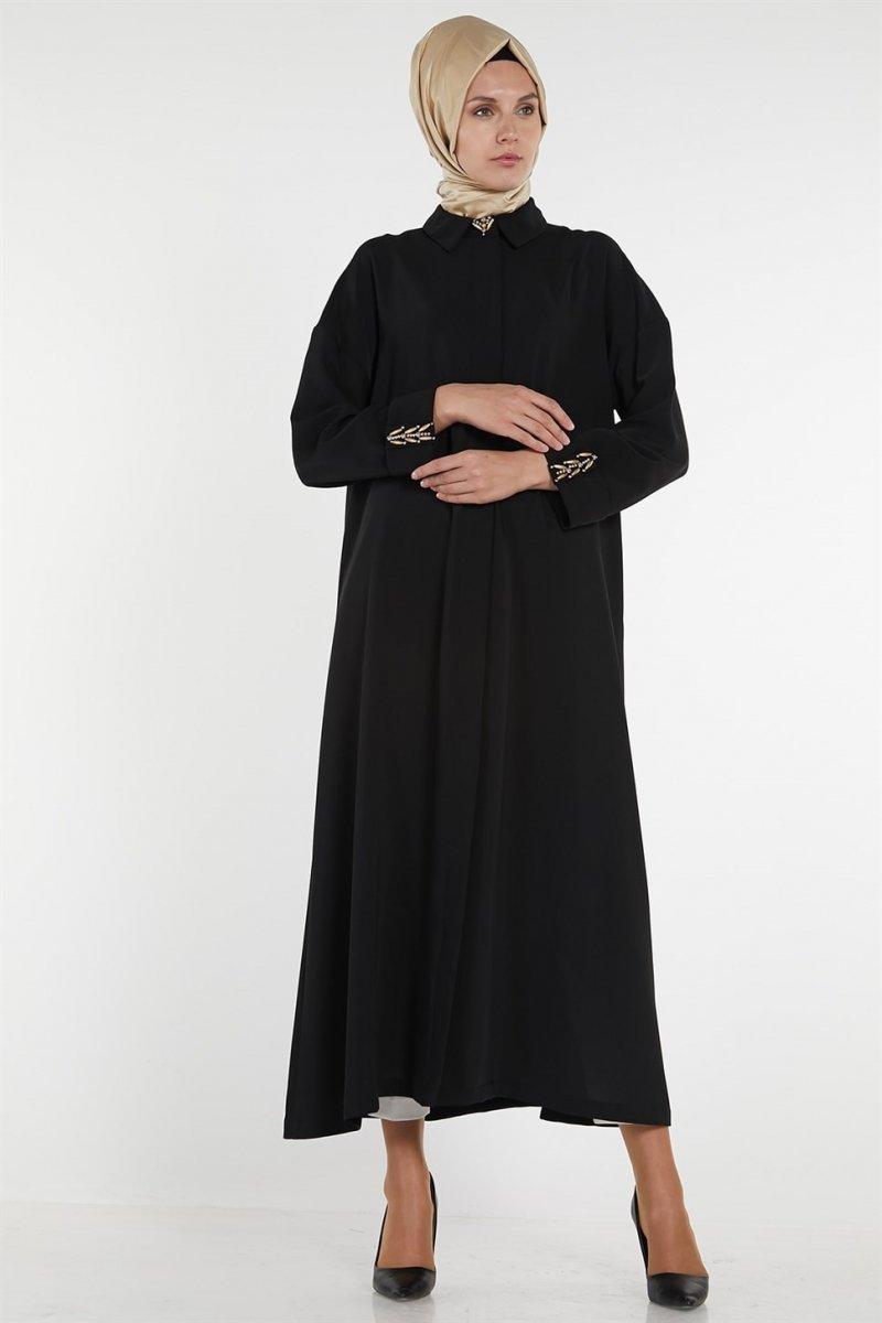 Armine Siyah Boncuk İşlemli Pardesü