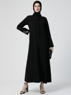 Refka Siyah Kolları Pul Payet Detaylı Ferace