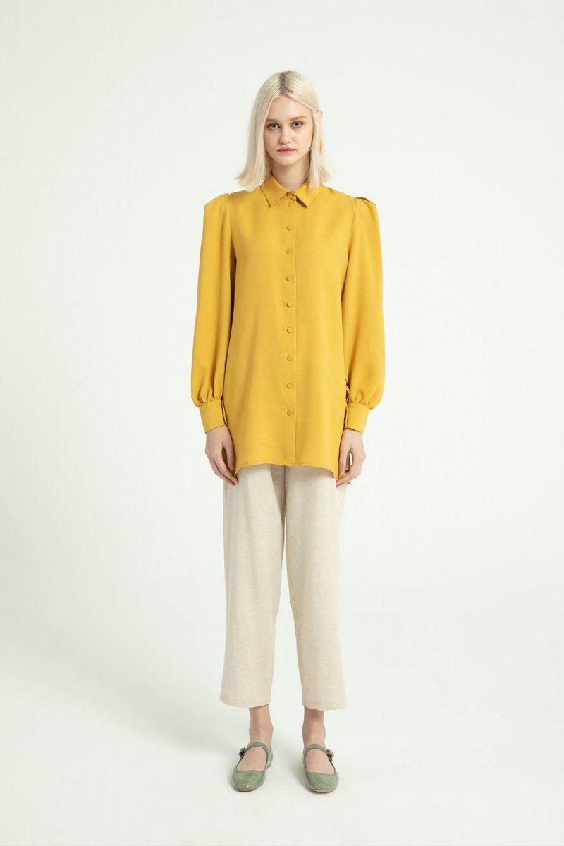 TOUCHE Sarı Kol Detaylı Keten Gömlek
