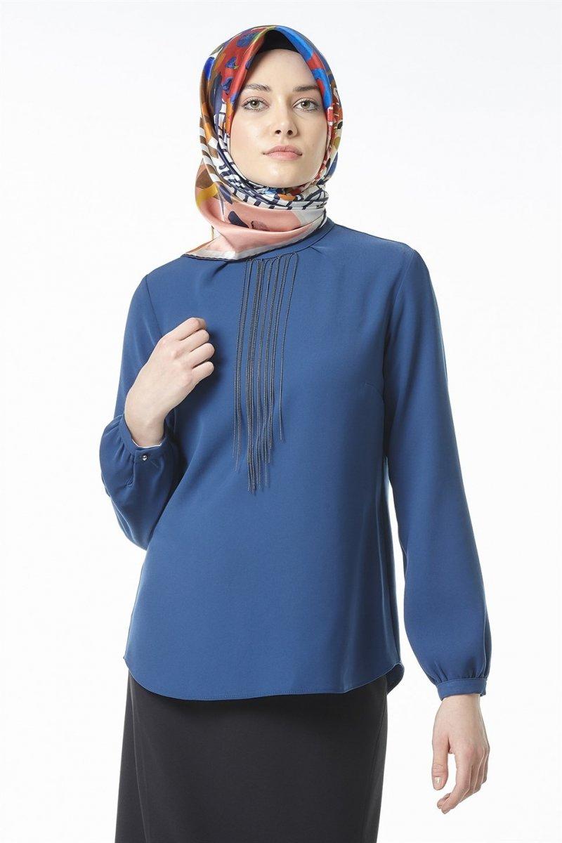 Armine İndigo Zincir Detaylı Bluz