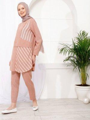 İnşirah Taba Tunik&Pantolon Çizgili İkili Takım