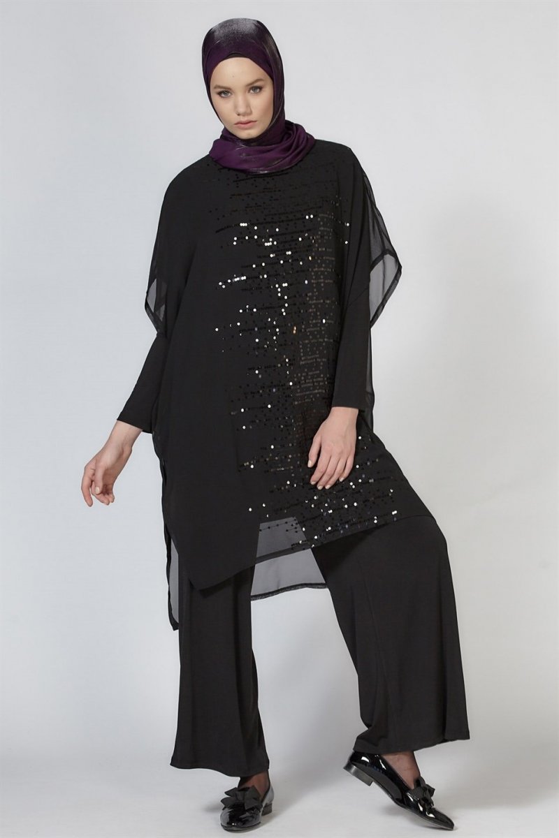 Armine Siyah Pulpayet Detaylı Üçlü Takım