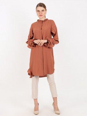 Puane Kiremit Fırfırlı Dökümlü Tunik