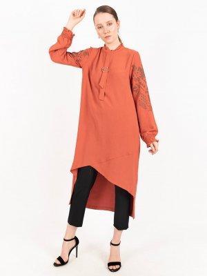 Puane Tarçın Asimetrik Kesim Baskılı Tunik