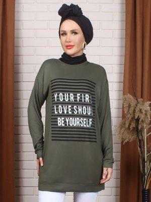 Myzen Haki Baskılı Doğal Kumaşlı Tunik