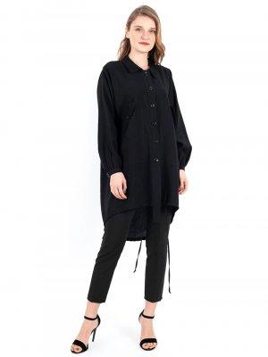 Loreen By Puane Siyah Düğmeli Asimetrik Tunik