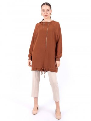 Loreen By Puane Kahverengi Kapüşonlu Eteği Büzgülü Tunik
