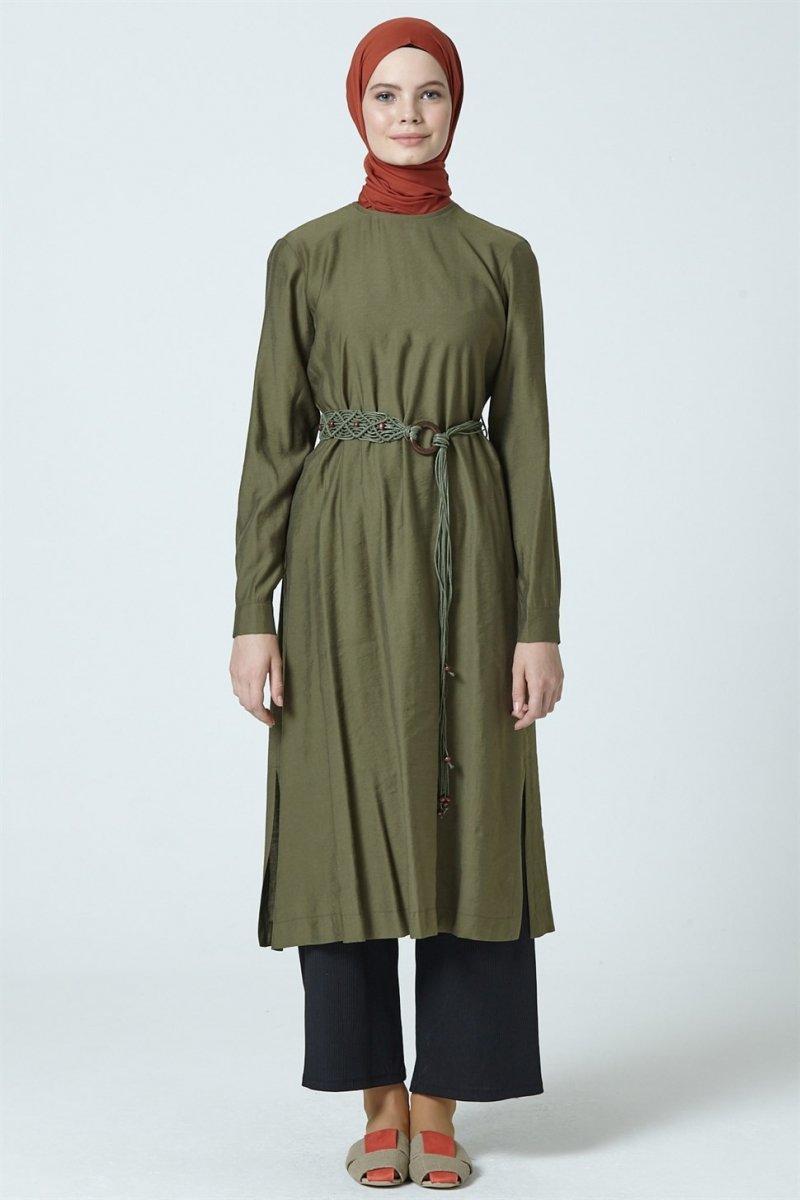 Armine Haki Kemer Aksesuarlı Tunik