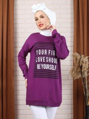 Myzen Mor Baskılı Doğal Kumaşlı Tunik