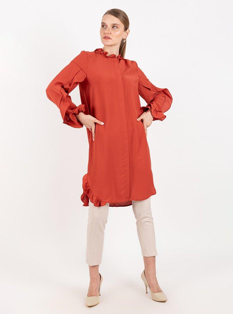 Puane Mercan Fırfırlı Dökümlü Tunik