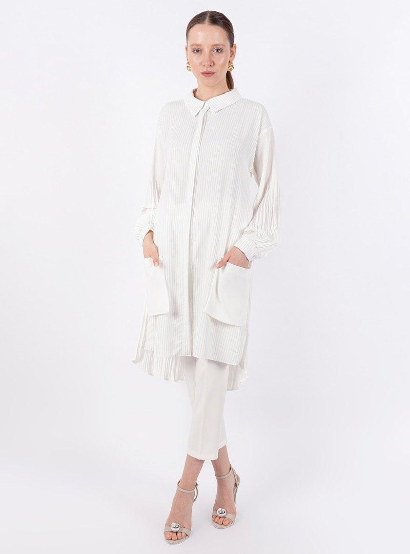 Puane Ekru Piliseli Çizgili Tunik