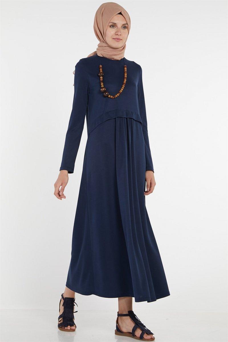 Armine Lacivert Kolye Aksesuarlı Elbise