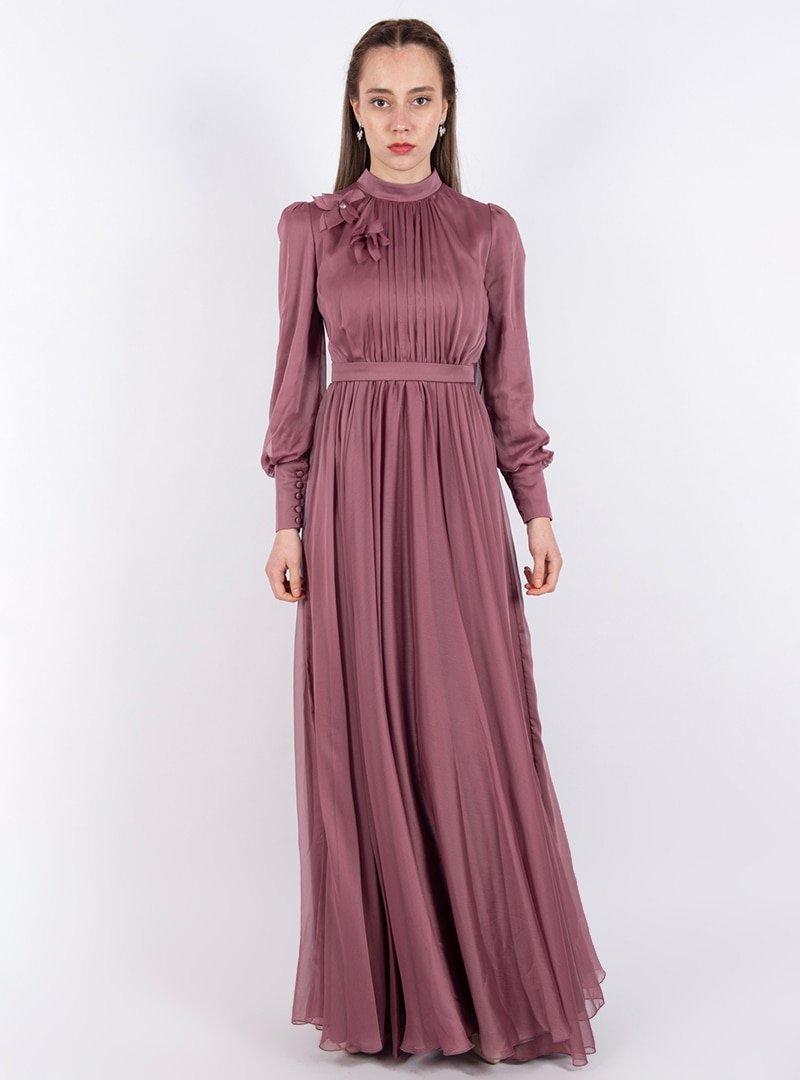Puane Gül Kurusu Kemerli Elbise