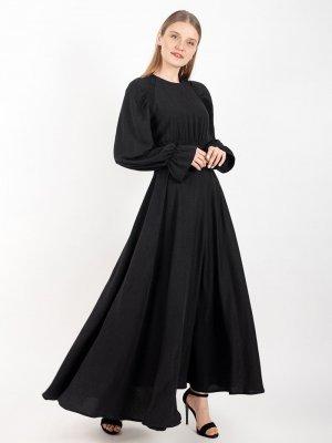 Puane Siyah Büzgülü Elbise