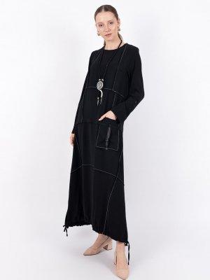 Puane Siyah Kolyeli Bohem Elbise