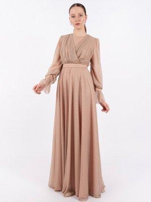 Loreen By Puane Bej Simli Kuşaklı Elbise