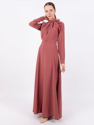 Puane Gül Kurusu Kemerli Elbise