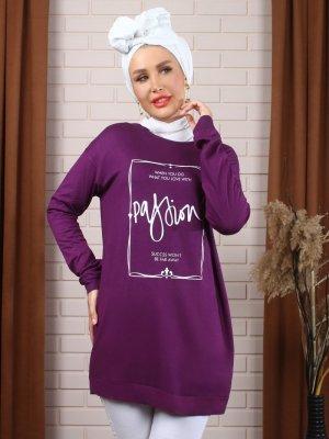 Myzen Mor Baskılı Doğal Kumaşlı Tunik