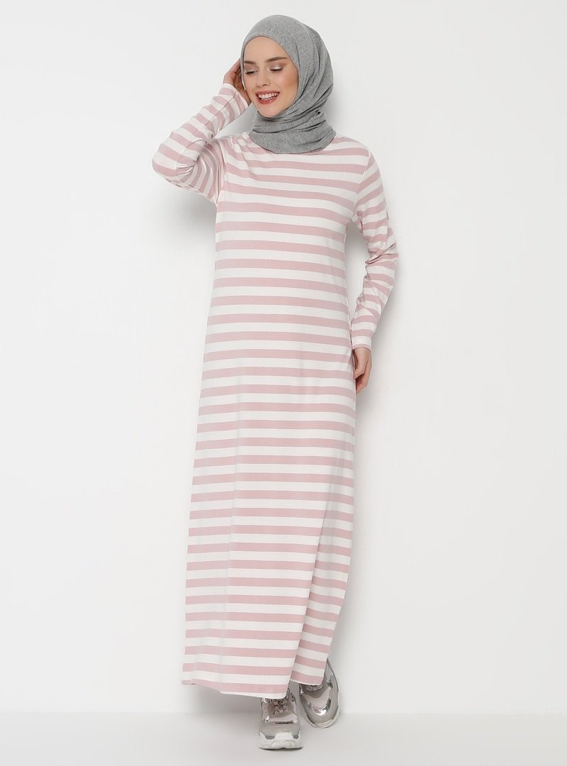 Muni Muni Pudra Çizgili Elbise