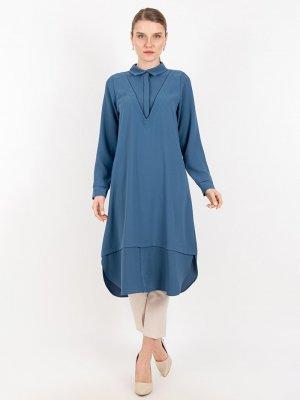 Puane İndigo Gömlek Yaka Tunik
