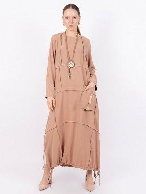 Puane Bej Kolyeli Bohem Elbise