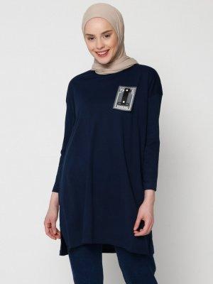 Muni Muni Beyaz Lacivert Bisiklet Yaka Tunik