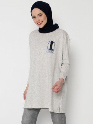 Muni Muni Gri Mavi Bisiklet Yaka Tunik