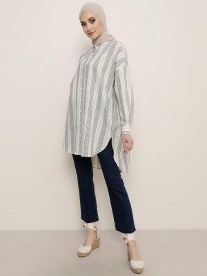 Refka Lacivert Çizgili Desenli Tunik