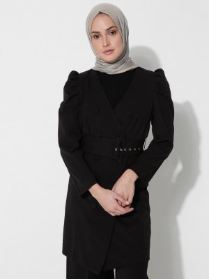 İroni Siyah Kemer Detaylı Blazer Ceket