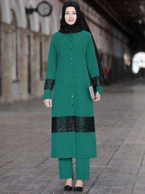 Azra Design Zümrüt Yeşili Tunik&Pantolon Narin İkili Takım