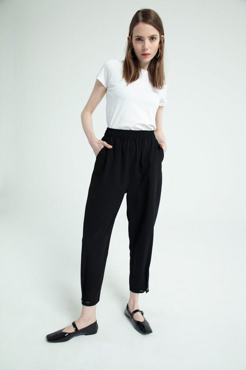 TOUCHE Siyah Paçası Düğmeli Şalvar Pantolon