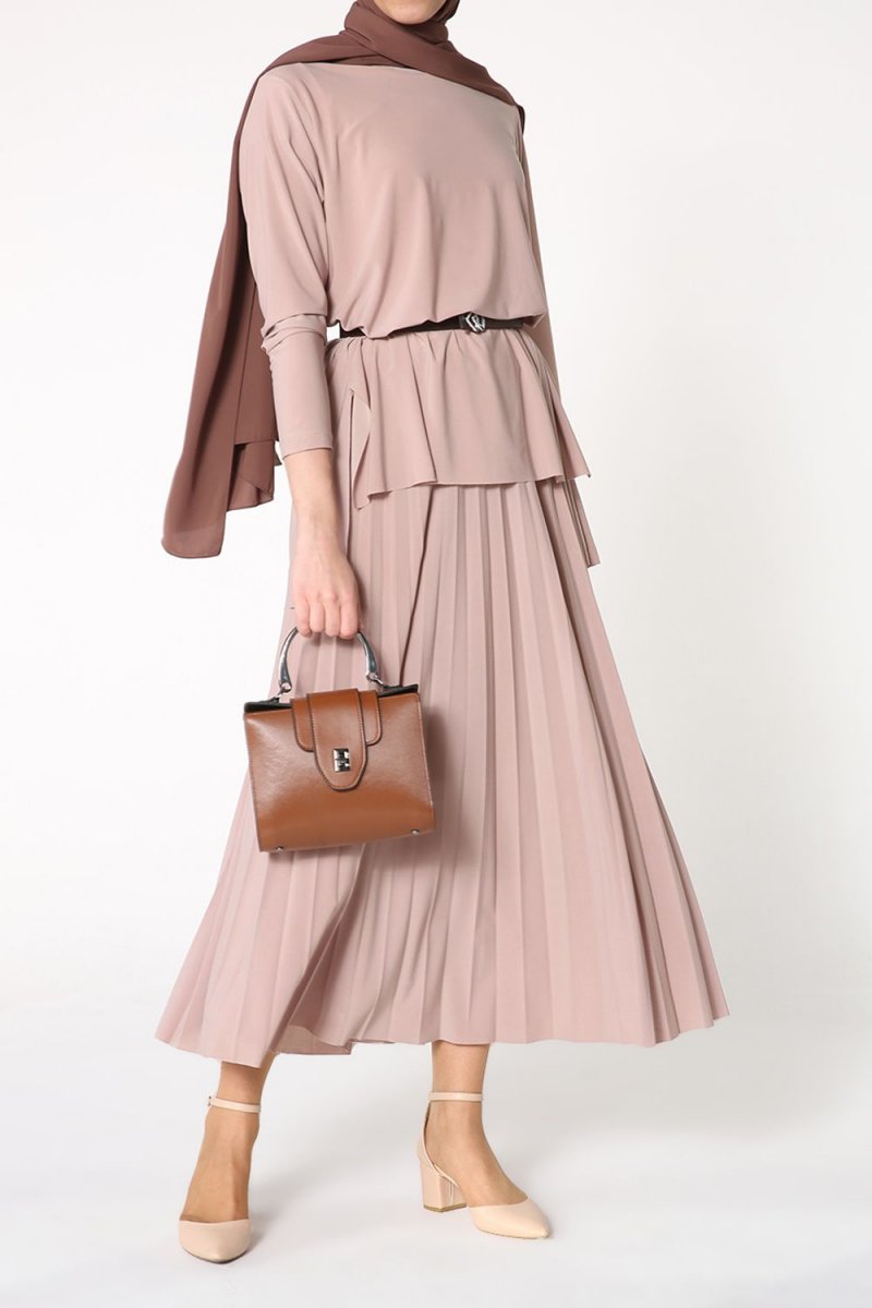 Allday Kahverengi Eteği Pliseli İkili Takım