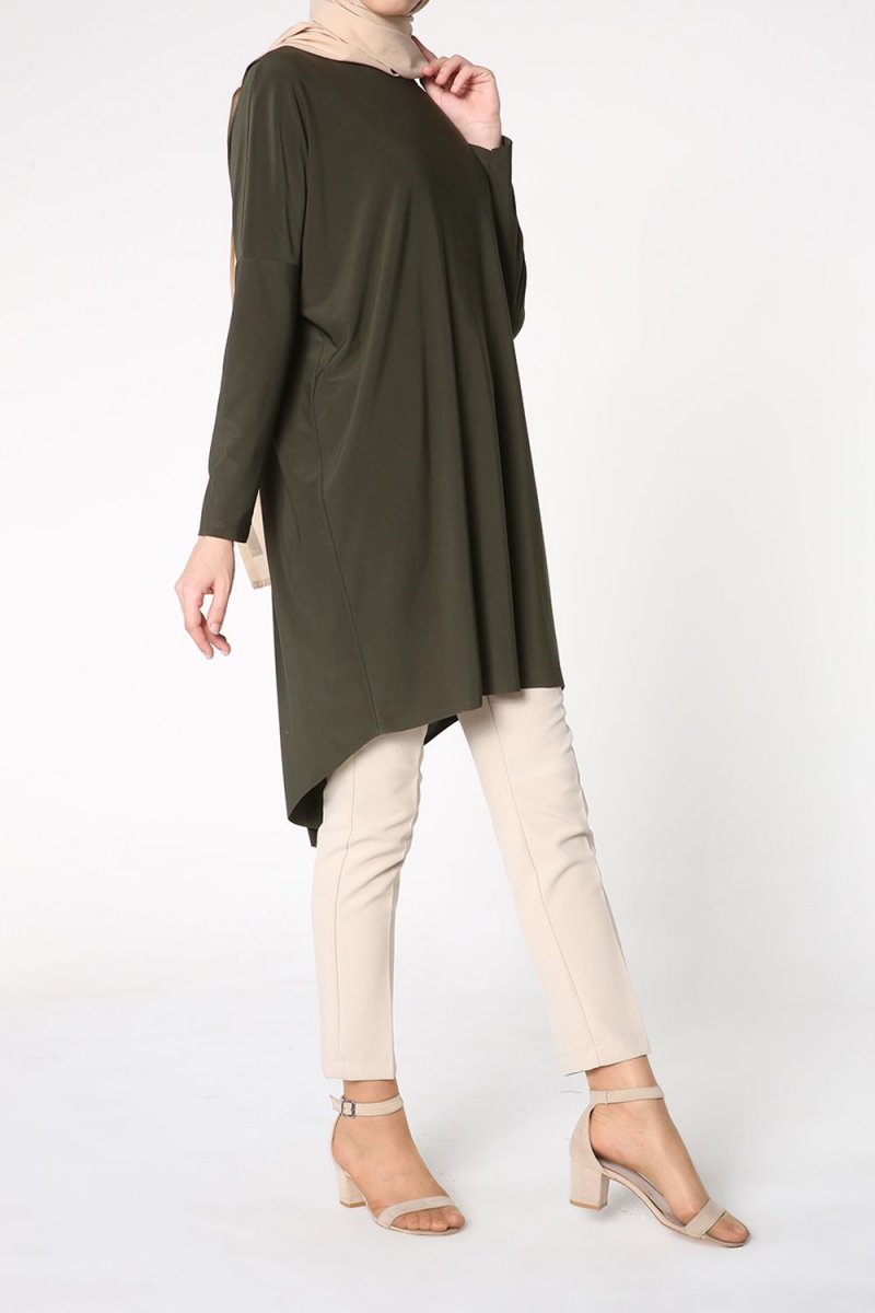 Allday Haki Arkası Çapraz Detaylı Tunik