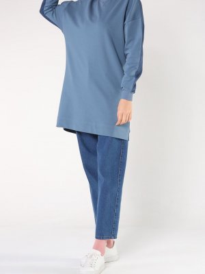Allday Mavi Düşük Kol Arkası Garnili Tunik