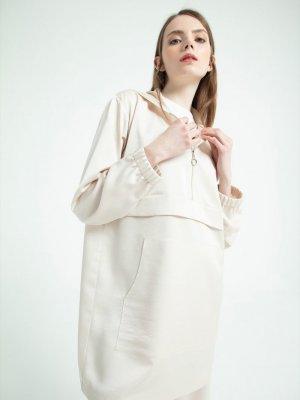 TOUCHE Bej Fermuarlı Kapüşonlu Tunik