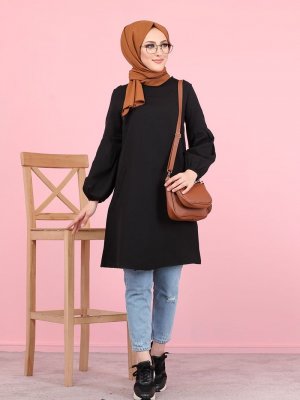 Tofisa Siyah Balon Kollu Tunik