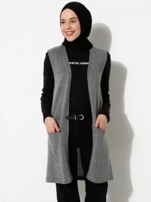 İLMEK TRİKO Gri Cepli Triko Yelek