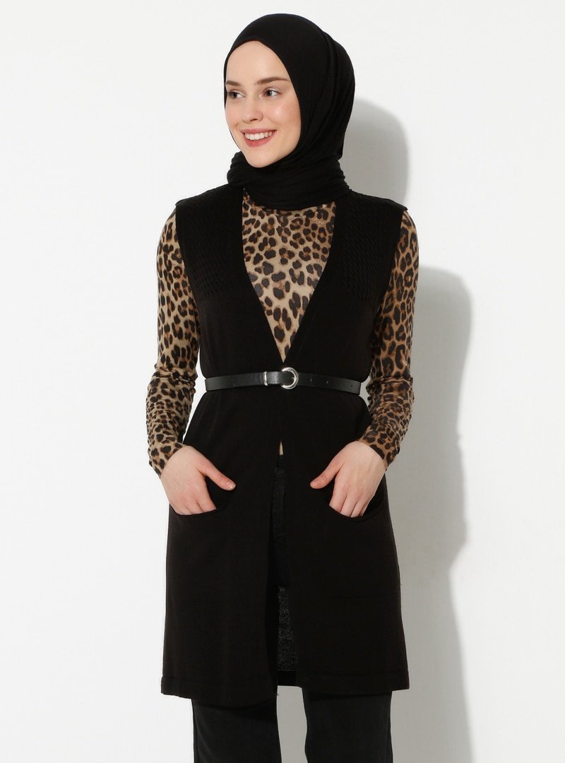 İLMEK TRİKO Siyah Cepli Triko Yelek