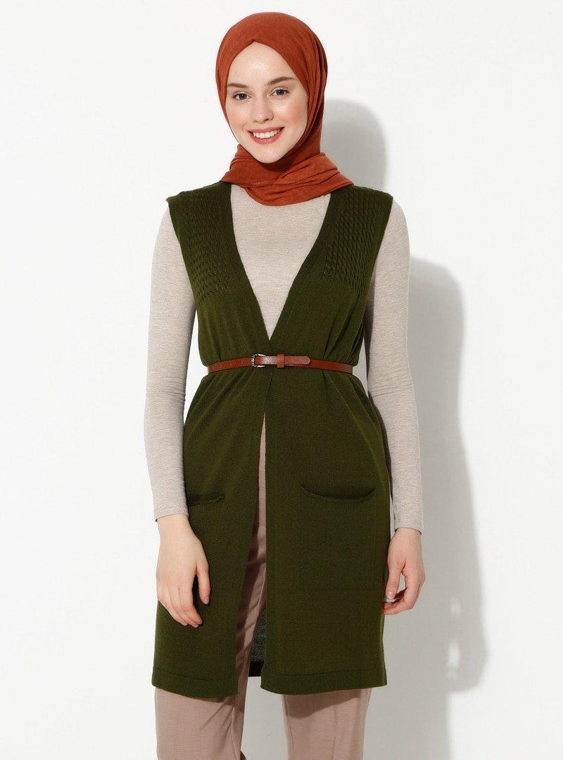 İLMEK TRİKO Haki Cepli Triko Yelek