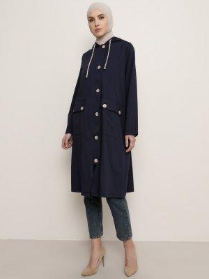 Tavin Lacivert Kapüşon Detaylı Düğmeli Trençkot