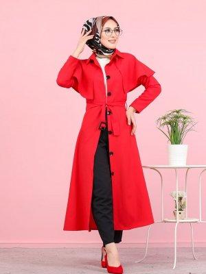 Tofisa Kırmızı Kemerli Trençkot