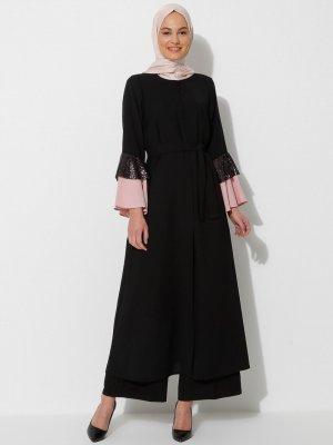 Filizzade Pudra Siyah Kol Detaylı Ferace