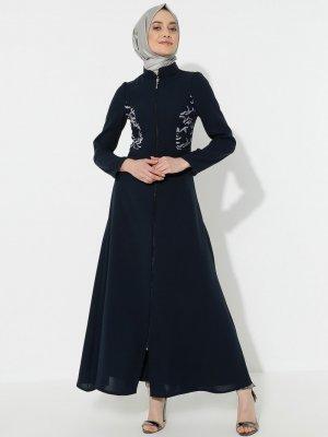 Filizzade Gümüş Lacivert Fermuarlı Ferace